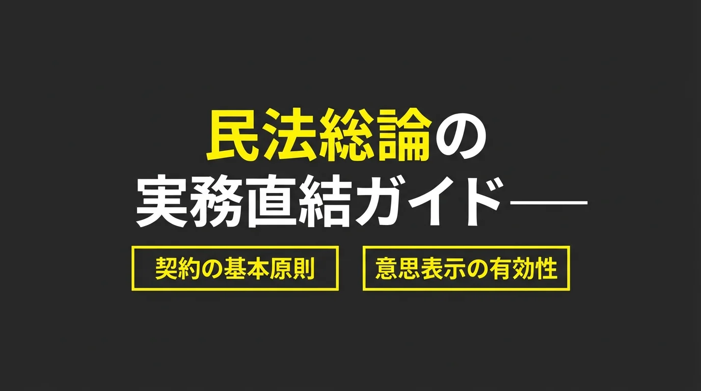 民法総論とは、民法典の第一編「総則」を中心に、権利能力・意思表示・代理・時効など民法全体に共通する基本原則を扱う分野のことである。不動産取引では、売主の意思能力の有無から契約締結、登記、引渡しまでのあらゆる場面でこの基本原則が適用される。